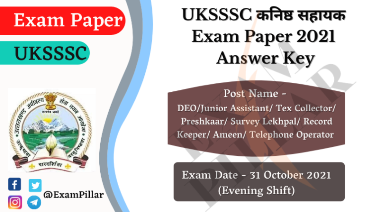 | Uttarakhand UKSSSC Previous Year Exam Paper Click Here |